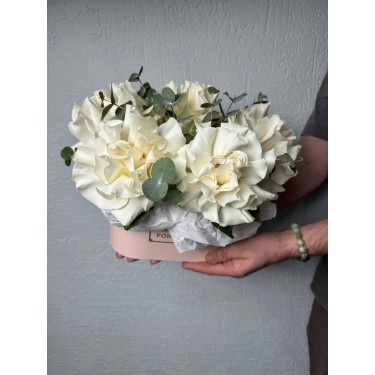 Композиция из белых французских роз и эвкалипта